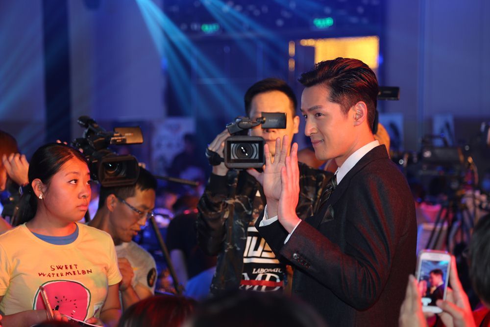 走过红毯后,陈杰和胡歌一同签名、盖章,并在舞台前就座。