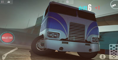 《漂移地带:卡车》从游戏名字上可以看出这是一款以卡车为主题的游戏,玩家不再操控那些低矮炫酷的高级跑车,而是登上狂野的卡车在赛道上进行漂移竞赛,游戏靠重力感应控制转向,按照地图上的标记路线进行比赛,通过油门和刹车进行漂移,虽然这款游戏没有与其他对手同台竞技的环节,但是真实的操作体验还是能给我们带来另类的赛车体验。