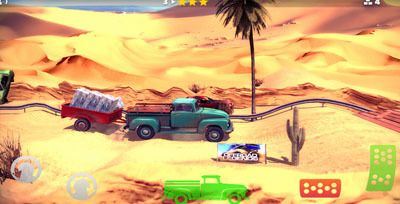 大脚车是赛车中的庞然巨兽,将皮卡的底盘升高,装上巨大无比的轮胎,在视觉和心理上都给人一种强大的感觉,《越野传奇2》就是让玩家操控一台暴力的大脚车在崎岖的山坡赛道上跨过重重障碍直至终点,游戏中的大脚车引用大量的高仿真车模型,车辆在行驶中撞击障碍物的效果也都极为拟真,仿佛让玩家亲临大脚车竞技场。